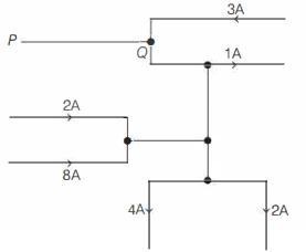 Figure below shows a portion of an electric circuit with the currents in amperes and their directions. The magnitude and direction of the current in the portion $P Q$ is