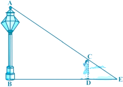 $\angle B =\angle D ($प्रत्येक $90^\circ$ का है, क्योंकि बल्ब लगा खंभा और लड़की दोनों ही भूमि से ऊर्ध्वाधर खड़े हैं$)$