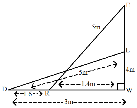 $\therefore$ The distance by which the ladder shifted upward = EL = 4.8m - 4m = 08m