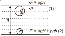 $\rho g H \times \frac{4}{3} \pi \times 27 r^3=(\rho g H) \frac{4}{3} \pi r^3+\rho g h \times \frac{4}{3} \pi r^3$