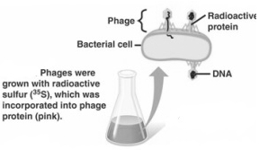 b Few bacteriophages when grown in bacterial culture containing $35 \mathrm{~S}$. It was observed that radioactivity was incorporated into the cysteine and methionine amino acids of proteins and thus these amino acids with $35 \mathrm{~S}$ formed the proteins of phage.