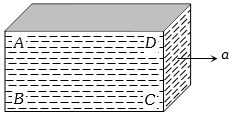 A closed rectangular tank is completely filled with water and is accelerated horizontally with an acceleration a towards right. Pressure is $(i)$ maximum at, and $ (ii) $ minimum at