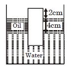 A cylinder of radius $4\ cm$ and height $10\ cm$ is immersed in two liquids as shown. Specific gravity of oil is $0.5$ . $2\ cm$ of cylinder is in the air. Select the $INCORRECT$ statement. Neglect atmospheric pressure.