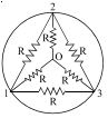 Inside $a$ super conducting ring six identical resistors each of resistance $R$ are connected as shown in figure. Imagine a battery of $emf$ $E$ between the point $0$ and $1$, with its positive terminal connected with $O.$