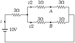 Shot Trick : $({V_A} - {V_B}) = \frac{i}{2}({R_2} - {R_1}) = \frac{2}{2}(3 - 1) = 2\,V$
