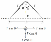 Resolving tension $T$, we have Restoring force on bead $=2 T \cos \theta$