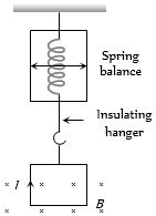 A square loop of side $a$ hangs from an insulating hanger of spring balance. The magnetic field of strength $B$ occurs only at the lower edge. It carries a current $I$. Find the change in the reading of the spring balance if the direction of current is reversed