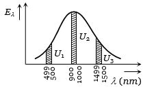 A black body is at a temperature of $2880\;K$. The energy of radiation emitted by this object with wavelength between $499\;nm$ and $500\;nm$ is ${U_1}$, between $999\;nm$ and $1000\;nm$ is ${U_2}$ and between $1499\;nm$ and $1500\;nm$ is ${U_3}$. The Wein's constant $b = 2.88 \times {10^6}\;nm\,K$. Then