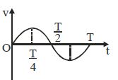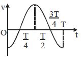 A body is performing simple harmonic motion with amplitude a and time period $T$. Variation of its acceleration $(f)$ with time $(t)$ is shown in figure. If at time $t$, velocity of the body is $v$, which of the following graphs is correct