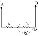 Resistances $R_1$ and $R_2$ each $60\,\Omega$ are connected in series as shown in figure. The Potential difference between $A$ and $B$ is kept $120$ volt. Then what ............. $V$ will be the reading of voltmeter connected between the point $C$ and $D$ if resistance of voltmeter is $120\,\Omega .$