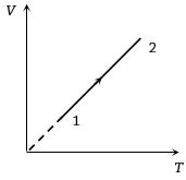 Volume versus temperature graph of two moles of helium gas is as shown in figure. The ratio of heat absorbed and the work done by the gas in process $1-2$ is