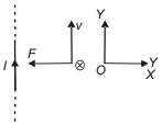A charge $Q$ moves parallel to a very long straight wire carrying a current $l$ as shown. The force on the charge is
