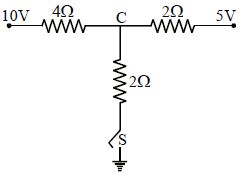 In the circuit diagram shown in figure given below, the current flowing through resistance $3\, \Omega$ is $\frac{ x }{3}\,A$. The value of $x$ is $...........$