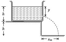 A tank is filled upto a height $h$ with a liquid and is placed on a platform of height h from the ground. To get maximum range ${x_m}$ a small hole is punched at a distance of $y$ from the free surface of the liquid. Then