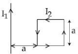 A rigid square loop of side $a$ and carrying current $I_2$ is laying on a horizontal surface near a long current $I_1$ wire in the same plane as shown in figure. The net force on the loop due to the wire will be