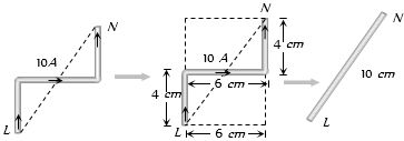 A current carrying wire $LN$ is bent in the from shown below. If wire carries a current of $10\, A$ and it is placed in a magnetic field of $5\,T$ which acts perpendicular to the paper outwards then it will experience a force.........$N$