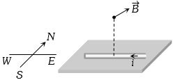A current flows in a conductor from east to west. The direction of the magnetic field at a points above the conductor is .....