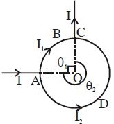 $\mathrm{B}_{1}=\frac{\mu_{0} I_{1} \theta_{1}}{4 \pi R}=\frac{\mu_{0} I_{1} l_{1}}{4 \pi R^{2}} \otimes \quad\left(\text { As } l_{1}=\theta_{1} R\right)$