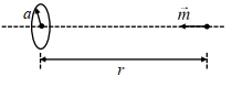 ($1$) When the dipole $m$ is placed at a distance $r$ from the center of the loop (as shown in the figure), the current induced in the loop will be proportional to