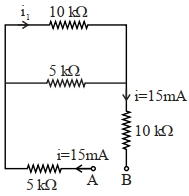d $i_{1}=\frac{5}{10+5} \times 15 mA =5 mA$