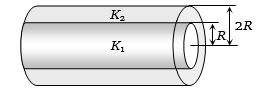 ==> ${K_{eq}} = \frac{{{K_1}(\pi {R^2}) + {K_2}(3\pi {R^2})}}{{\pi {R^2} + 3\pi {R^2}}} = \frac{{{K_1} + 3{K_2}}}{4}$