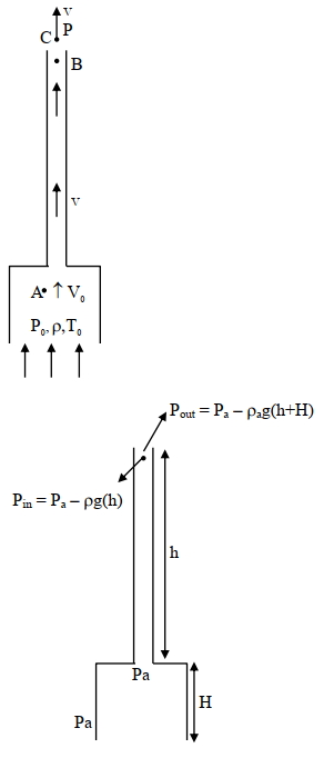 $\Rightarrow V^2 \simeq \frac{2 \rho_0}{\rho} g(H+h)-2 g h$