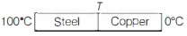 $\operatorname{So},\left(\frac{k A\left(T_1-T\right)}{l}\right)_{\text {steel }}=\left(\frac{k A\left(T-T_2\right)}{l}\right)_{\text {copper }}$