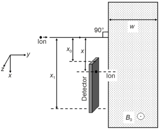 $(C)$ For detecting ions with $1 \leq A_M \leq 196$, the minimum height $\left(x_1-x_0\right)$ of the detector is $55 cm$.