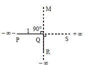 An infinitely long conductor $PQR$ is bent to from a right angle as shown. A current $I$ flows through $PQR$ . The magnetic field due to this current at the point $M$ is $H_1$ . Now, another infinitely long straight conductor $QS$ is connected at $Q$ so that the current in $PQ$ remaining unchanged. The magnetic field at $M$ is now $H_2$ . The ratio $H_1/H_2$ is given by
