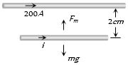 $ \Rightarrow {10^{ - 2}} \times 9.8 = {10^{ - 7}} \times \frac{{2 \times 200 \times i}}{{2 \times {{10}^{ - 2}}}} \Rightarrow i = 49\,A$