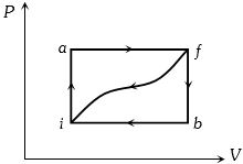 When a system is taken from state $i$ to a state $f$ along path $iaf, \,Q = 50\,J$ and $W = 20J.$ Along path $ibf, \,Q = 35J.$ If $W = - 13J$ for the curved return path $f i, Q$ for this path is ...... $J$