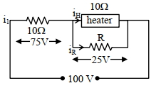 $R_{\text {heater }}=\frac{V^2}{P}=\frac{(100)^2}{1000}=10 \Omega$