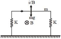 Hence the extension in the springs is $\frac{{ilB - mg}}{{2k}}$ (Note that effective spring constant is $2k$)
