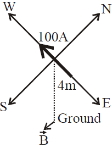 According to right hand palm rule, the magnetic fleld is directed towards south.