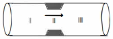 The platelets are drifting with the blood flowing in a streamline flow through a horizontal artery as shown below Artery is contracted in region $II$. Choose the correct statement.