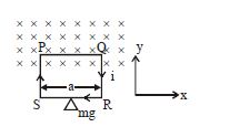 A rectangular loop of wire, supporting a mass $m$, hangs with one end in a uniform magnetic field $\vec B$ pointing into the plane of the paper. $A$ clockwise current is set up such that $i> mg/Ba,$ where $a$ is the width of the loop. Then