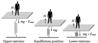 The reaction of the force on the platform away from the mean position. It reduces the weight of man on upper extreme i.e. net weight $= (60 -10)\, kgf.$