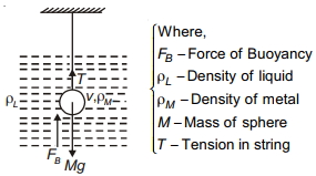 $\Rightarrow T=\rho_M V g-\rho_L V g \quad\left(\rho_M=\frac{M}{V}\right)$