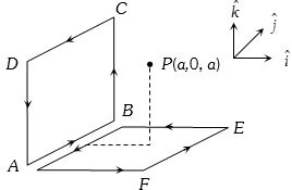d (d) The magnetic field at $P(a,\,0,\,a)$ due to the loop is equal to the vector sum of the magnetic fields produced by loops $ABCDA$ and $AFEBA$ as shown in the figure.