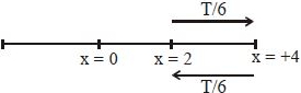 minimum time taken by particle $=\frac{T}{6}+\frac{T}{6}$