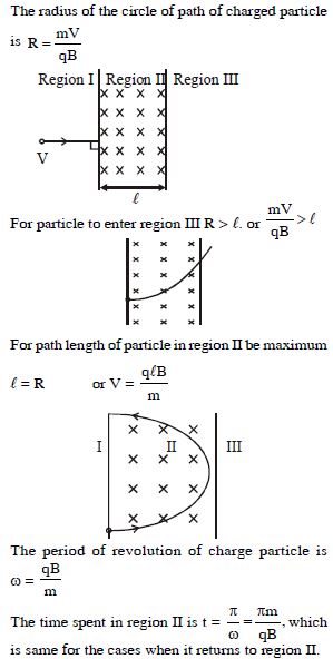 A particle of mass $m$ and charge $q$ , moving with velocity $V$ enters region $II$ normal to the boundary as shown in the figure. Region $II$ has a uniform magnetic field $B$ perpendicular to the plane of the paper. The length of the region $II$ is $l$ . Choose the not correct choice