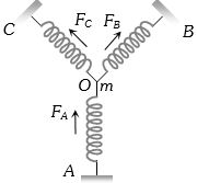 b (b) When the particle of mass $m$ at $O$ is pushed by $y$ in the direction of $A$ The spring $A$ will be compressed by $y$ while spring $B$ and $C$ will be stretched by $y' = y\cos 45^\circ .$ So that the total restoring force on the mass $m $ along $ OA.$
