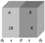 ==> $\frac{4}{3}\frac{{KA \times 60}}{{2x}} = \frac{{2K.A \times {{(\Delta \theta )}_A}}}{x}$==> ${(\Delta \theta )_A} = 20K$