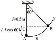 $- mgl \left(1-\cos 60^{\circ}\right)=\frac{1}{2} mv ^{2}-\frac{1}{2} mu ^{2}$