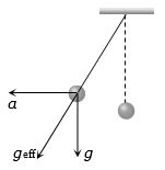 When train accelerates, the effective value of $g$ becomes $\sqrt {({g^2} + {a^2})} $ which is greater than $g$