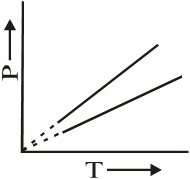 A perfect gas of a given mass is heated first in a small vessel and then in a large vessel, such that their volumes remain unchanged. The $P-T$ curves are
