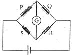 Resistances are arranged in a cyclic order to form a balanced wheatstone bridge as shown in figure. Ratio of power consumed in the branches $P + Q$ and $R + S$ is