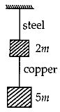 If the ratio of diameters, lengths and Young's modulus of steel and copper wires shown in the figure are $p, q$ and $s$ respectively, then the corresponding ratio of increase in their lengths would be