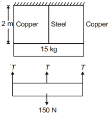 $\Rightarrow \frac{A_S}{A_C}=\frac{Y_C}{Y_S}$ $\left\{\begin{array}{l}\text { Where, } \\ A_C-\text { Area of copper wire } \\ Y_C-\text { Young's modulus copper } \\ A_S-\text { Area of steel wire } \\ Y_S-\text { Young's modulus steel }\end{array}\right.$