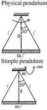 $\mathrm{T}_{1}=2 \pi \sqrt{\frac{\mathrm{I}}{\mathrm{mgd}}}=2 \pi \sqrt{\frac{\frac{\mathrm{m} \ell^{2}}{12}+\mathrm{m}\left(\frac{(\sqrt{3})}{2}\right)^{2}}{\mathrm{mg}\left(\frac{\ell \sqrt{3}}{2}\right)}}$